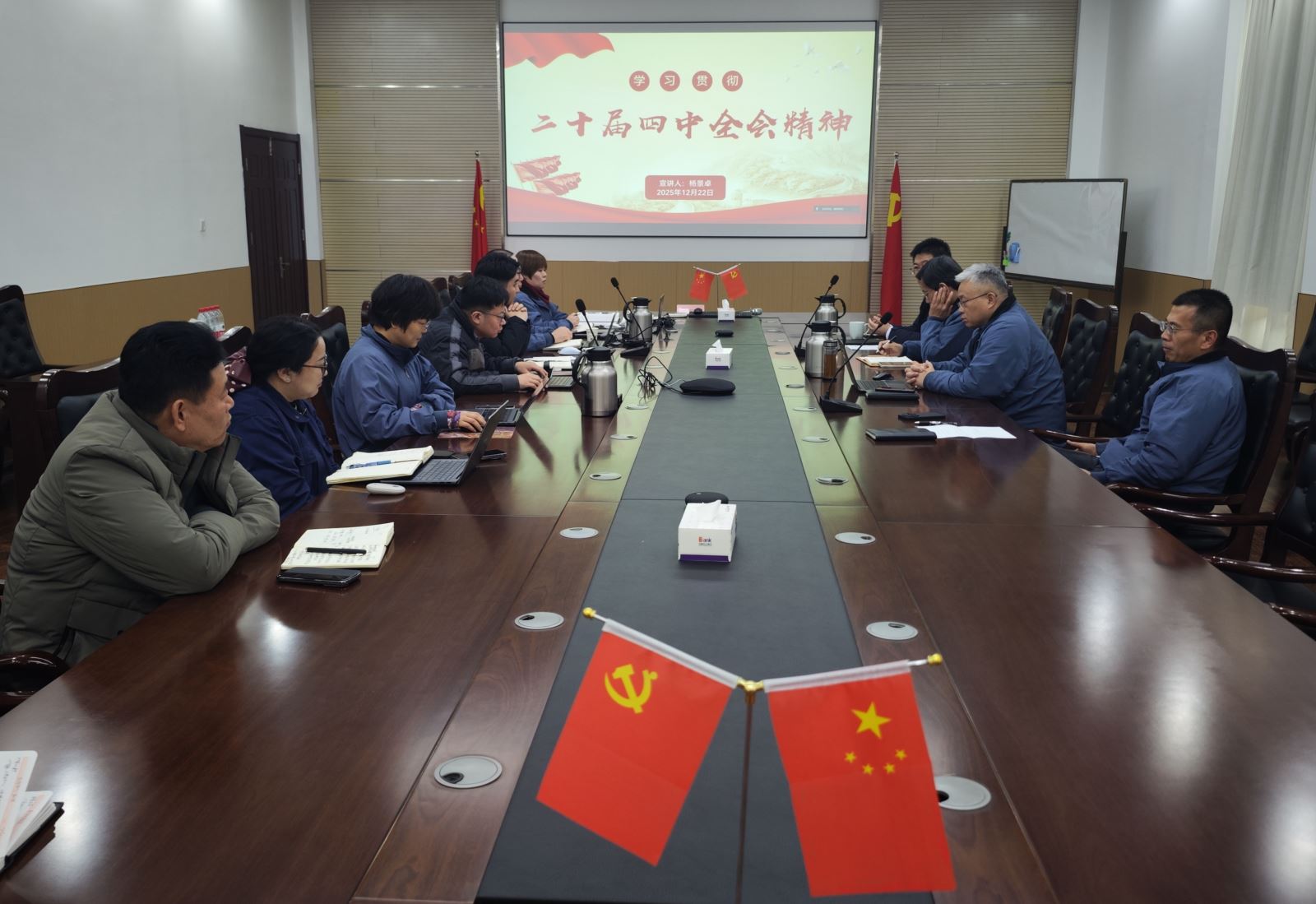 为深入学习贯彻党的二十届四中全会精神,切实把全体干部职工的思想和行动统一到党中央决策部署上来,12月22日下午,赛摩智能党总支组织召开党的二十届四中全会精神专题宣讲会,党总支书记杨景卓作宣讲报告,系统解读全会精神核心要义,部署贯彻落实具体举措,赛摩智能党总支委员、集团领导班子及各部室负责人参加了会议。